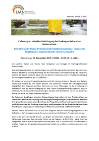 Hannover, den 10.10.2025 Einladung zur virtuellen Herbsttagung des Starkregen-Netzwerkes Niedersachsen: Berichte aus der Praxis der kommunalen Starkregenvorsorge: Umgesetzte Maßnahmen,…